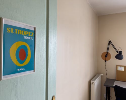 Chaque colocataire dispose de sa propre chambre, confortable et entièrement meublée. (décoration, literie de qualité, bureau, rangements).